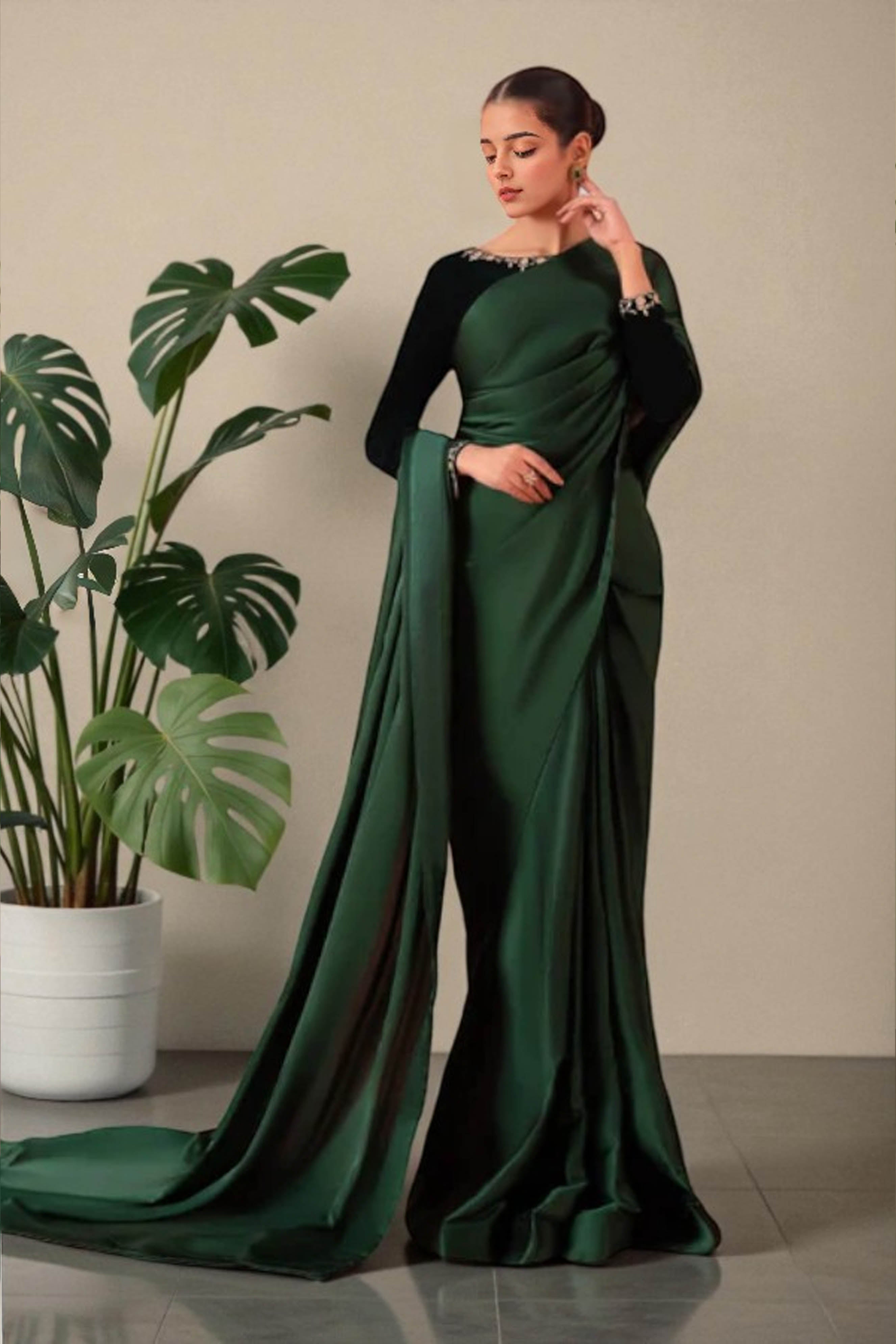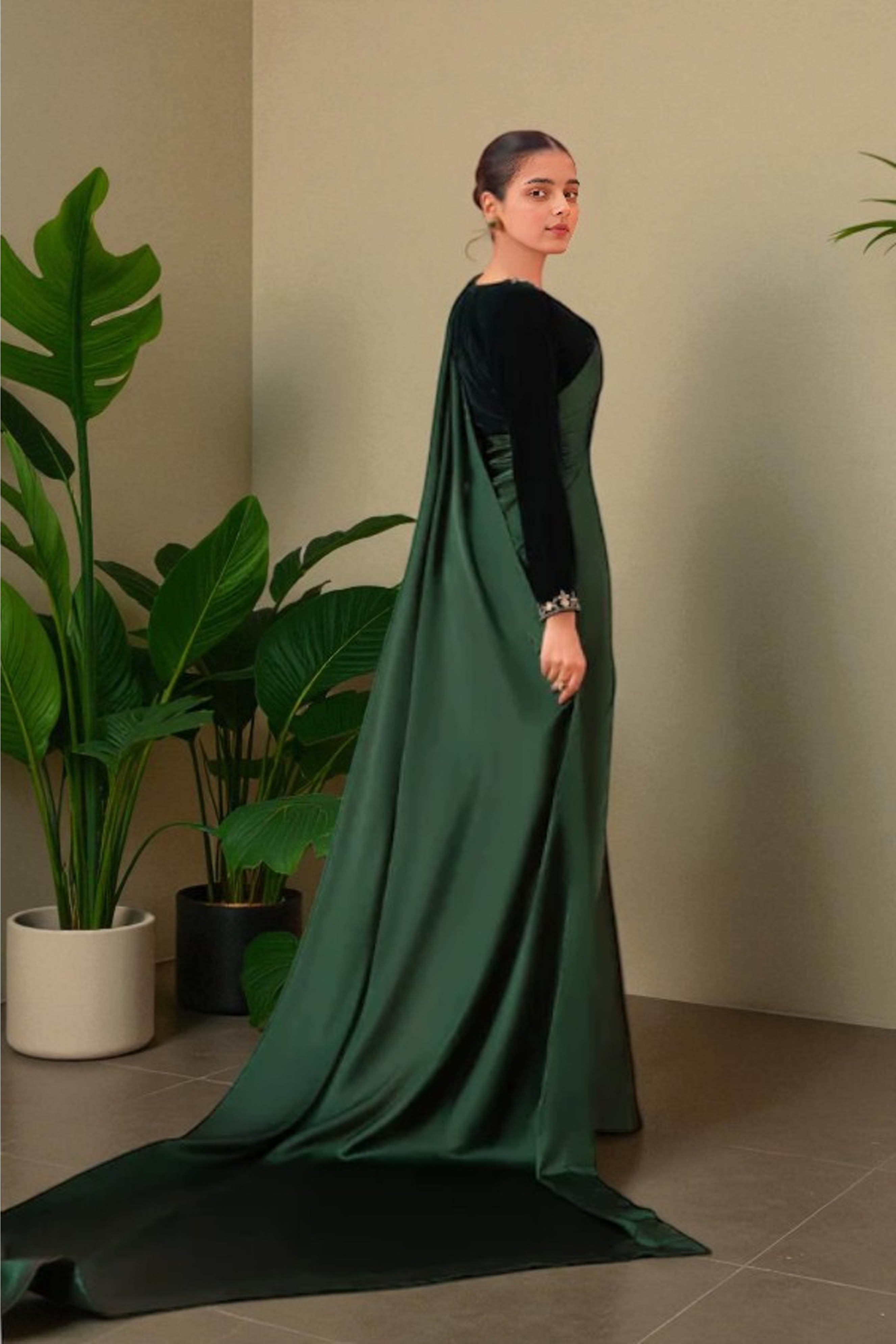Color - Green Silk & Black Velvet